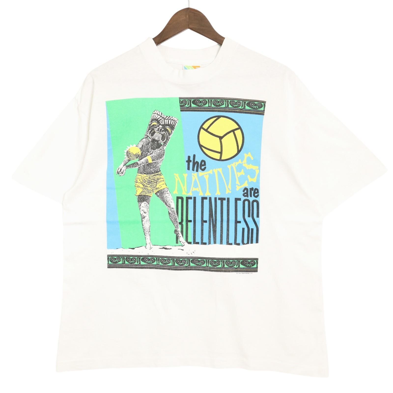 コメント:「the NATIVES are RELENTLESS」翻訳すると「先住民は容赦ない」という内容。ビーチバレーに関するTシャツ。