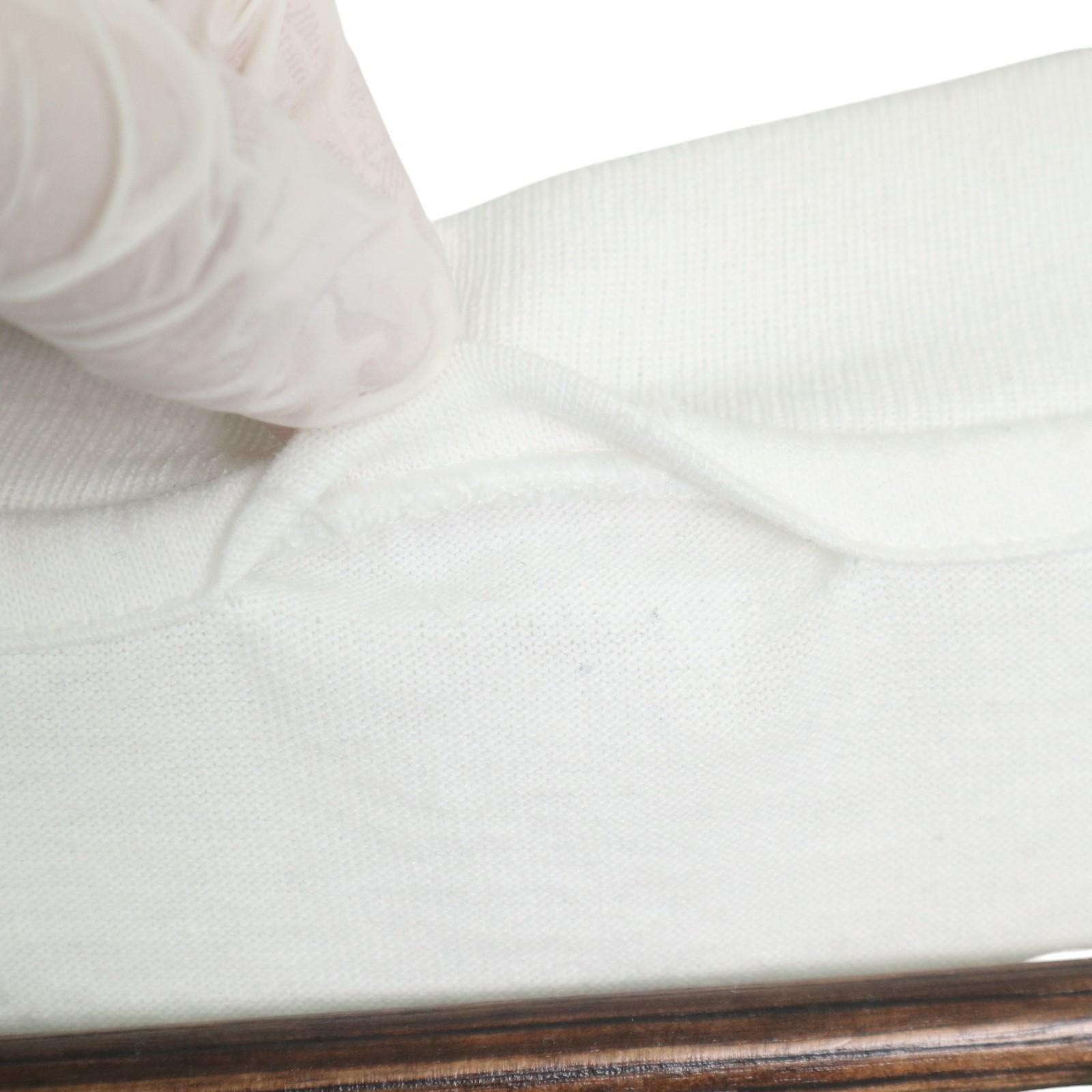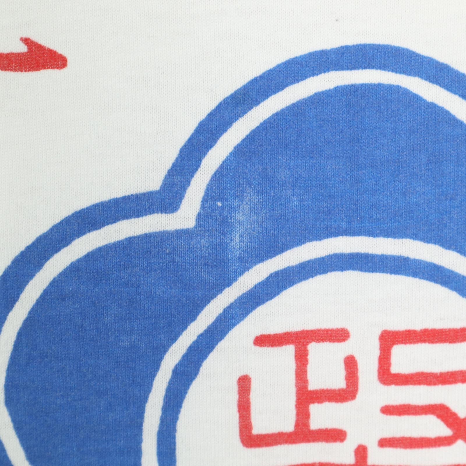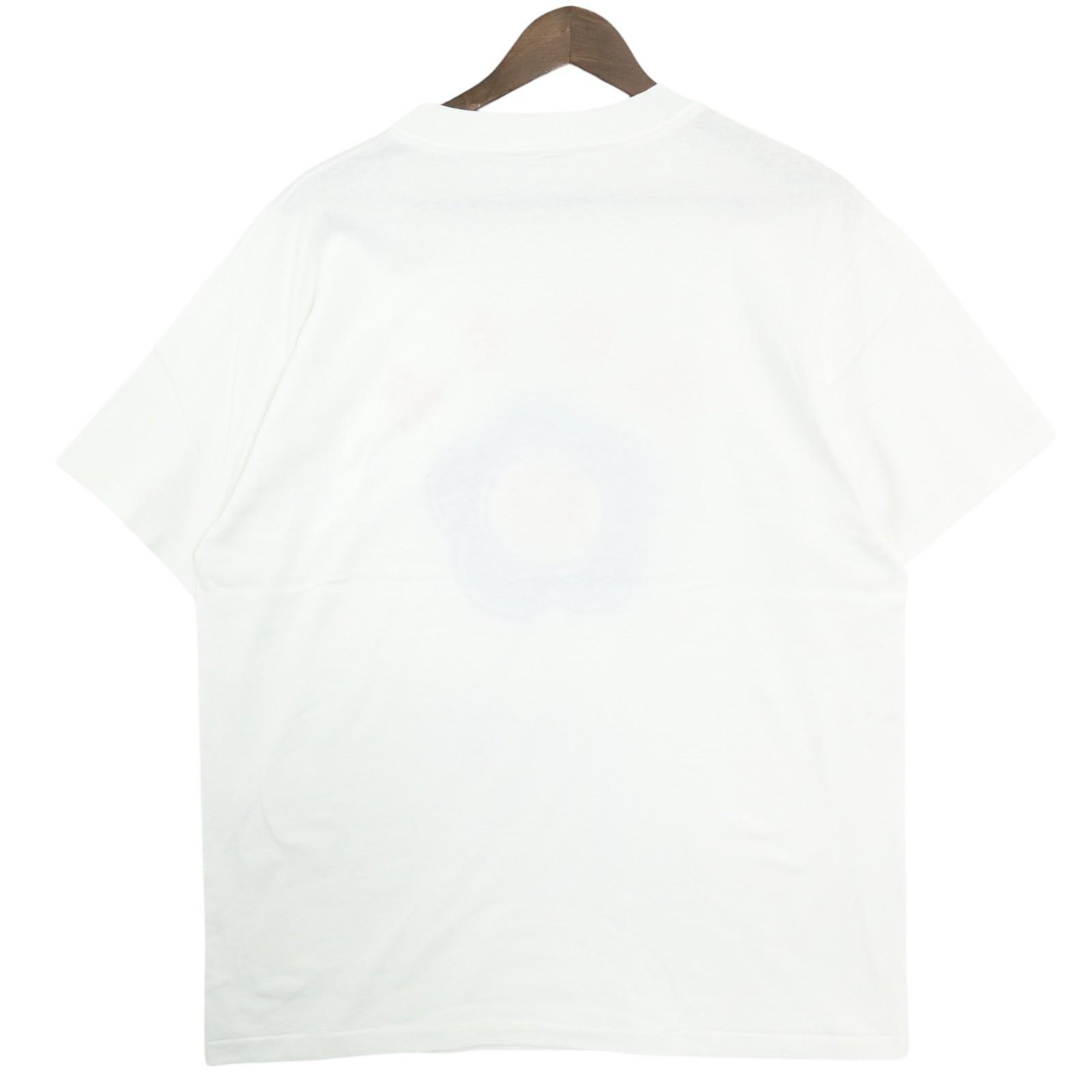 首周りに糸のほつれ、正面プリントに薄いはげがございます。着用に問題はございません。
