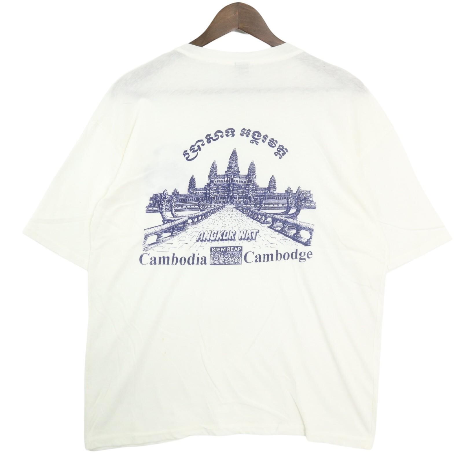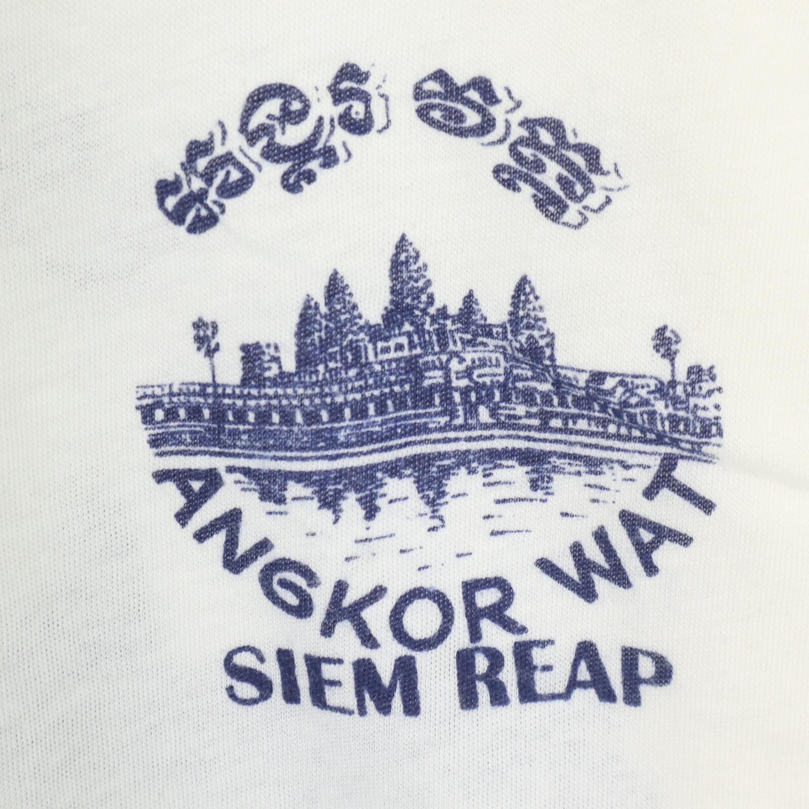 コメント:カンボジアの世界遺産 "アンコールワット" のスーベニアTシャツ。クメール語の文字とバックプリントの存在感がポイント。